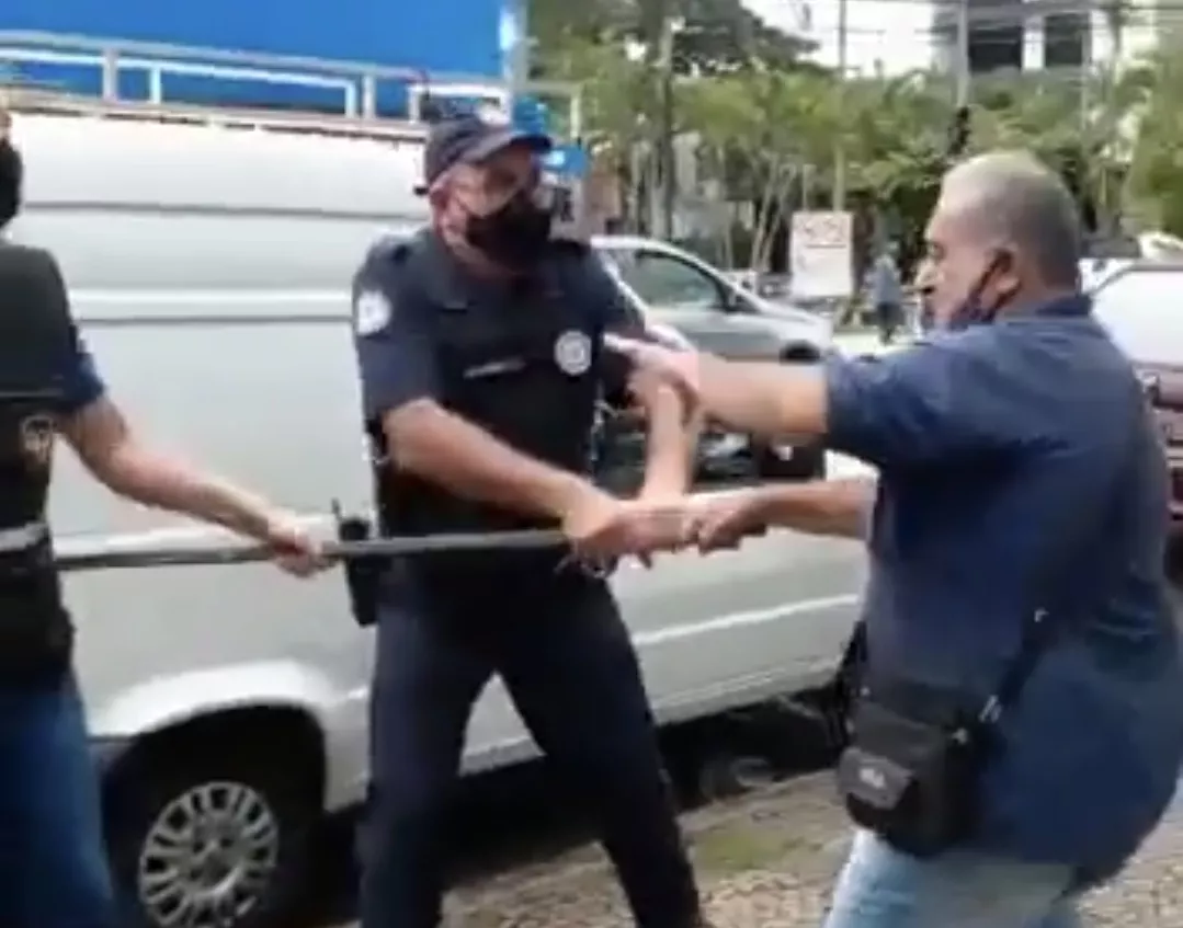Depois disso, um homem sinalizou atacar o fiscal, que se defendeu com a barra de ferro. A Guarda Municipal ficou, então, na frente do fiscal e apontou os teasers (armas de choque) para as pessoas que estavam próximas.