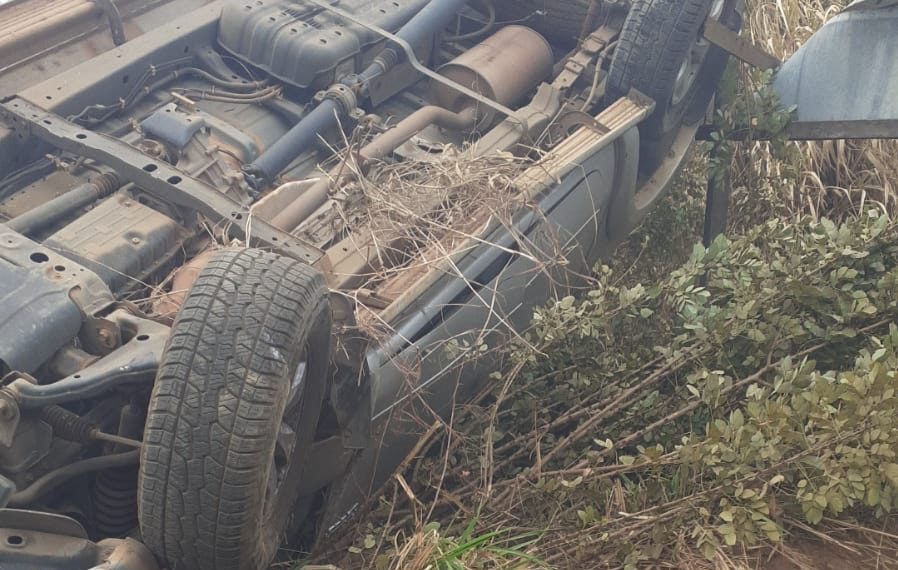 O homem que capotou a caminhonete saiu do veículo e fugiu no outro utilitário.