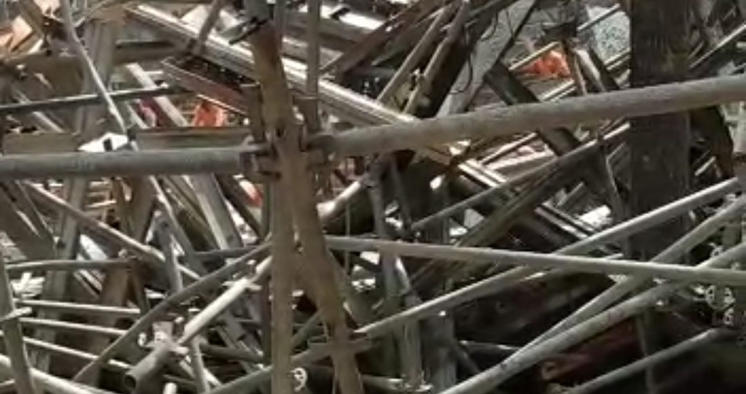 A pesada estrutura no prédio que sustenta um dos pisos do prédio cedeu e desmorou por volta do meio-dia desta sexta-feira. Ainda será apurada a falha que ocasionou o acidente envolvendo a queda da laje.