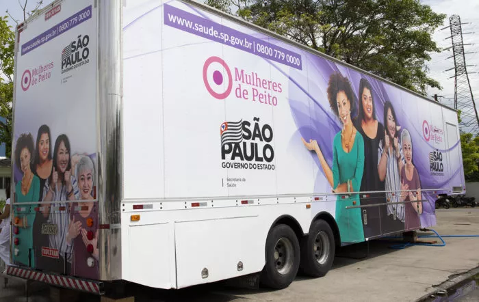 A carreta do programa Mulheres de Peito percorre os municípios do estado de São Paulo ininterruptamente, para incentivar mulheres a realizar exames de mamografia gratuitamente pelo SUS (Sistema Único de Saúde), ampliando o acesso da população à atenção básica em saúde.
