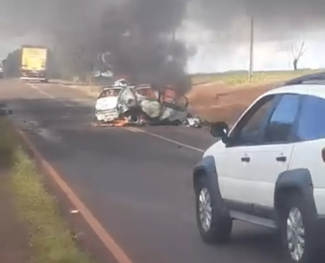 A vítima do carro de passeio ficou presa às ferragens e não conseguiu sair. O carro ficou parado no meio da pista, entre Nuporanga e São José da Bela Vista, pegou fogo, que destruiu todo o veículo.