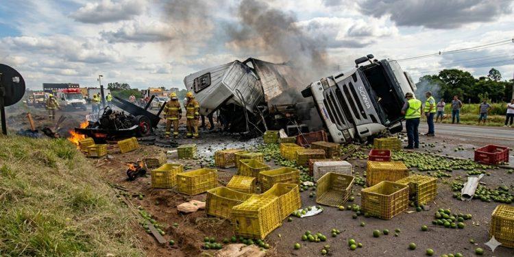 Um grave acidente envolvendo dois caminhões deixou duas pessoas feridas na tarde desta quinta-feira, 16, na Rodovia Cândido Portinari, no trecho que passa por Batatais.