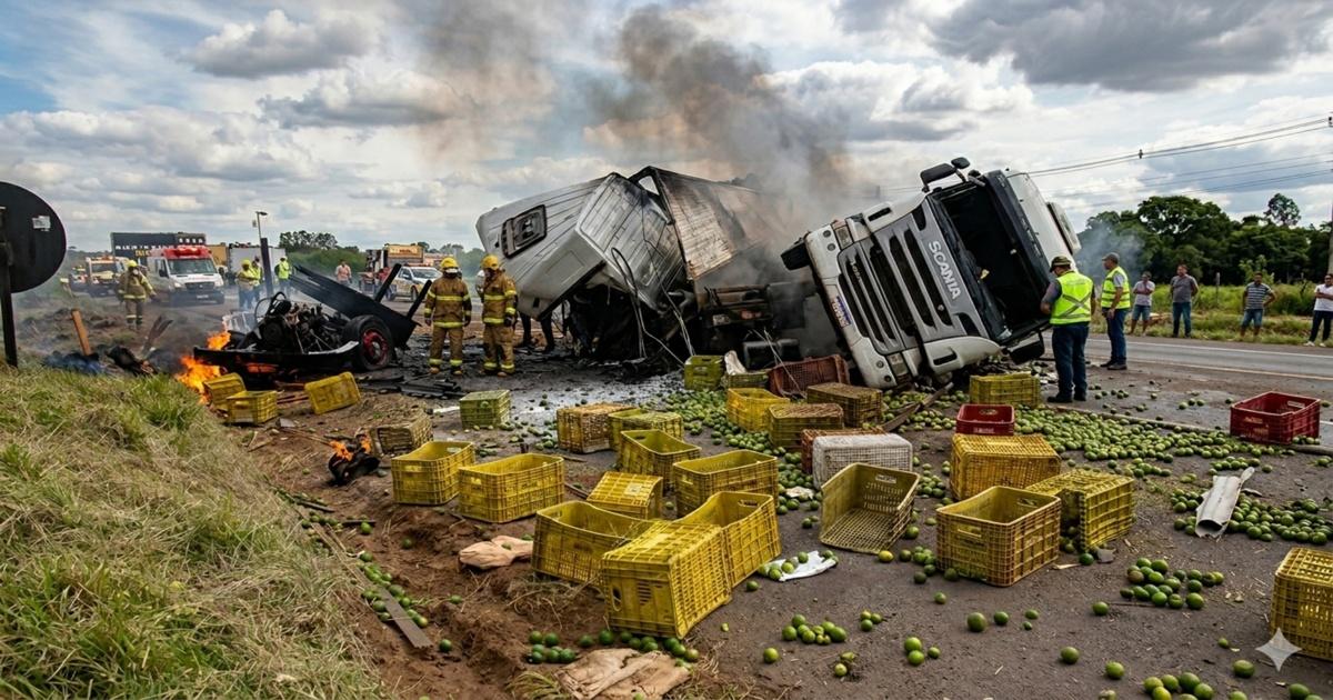 Com o impacto, os dois veículos pegaram fogo, mobilizando equipes de emergência e gerando preocupação entre motoristas que passavam pelo local.