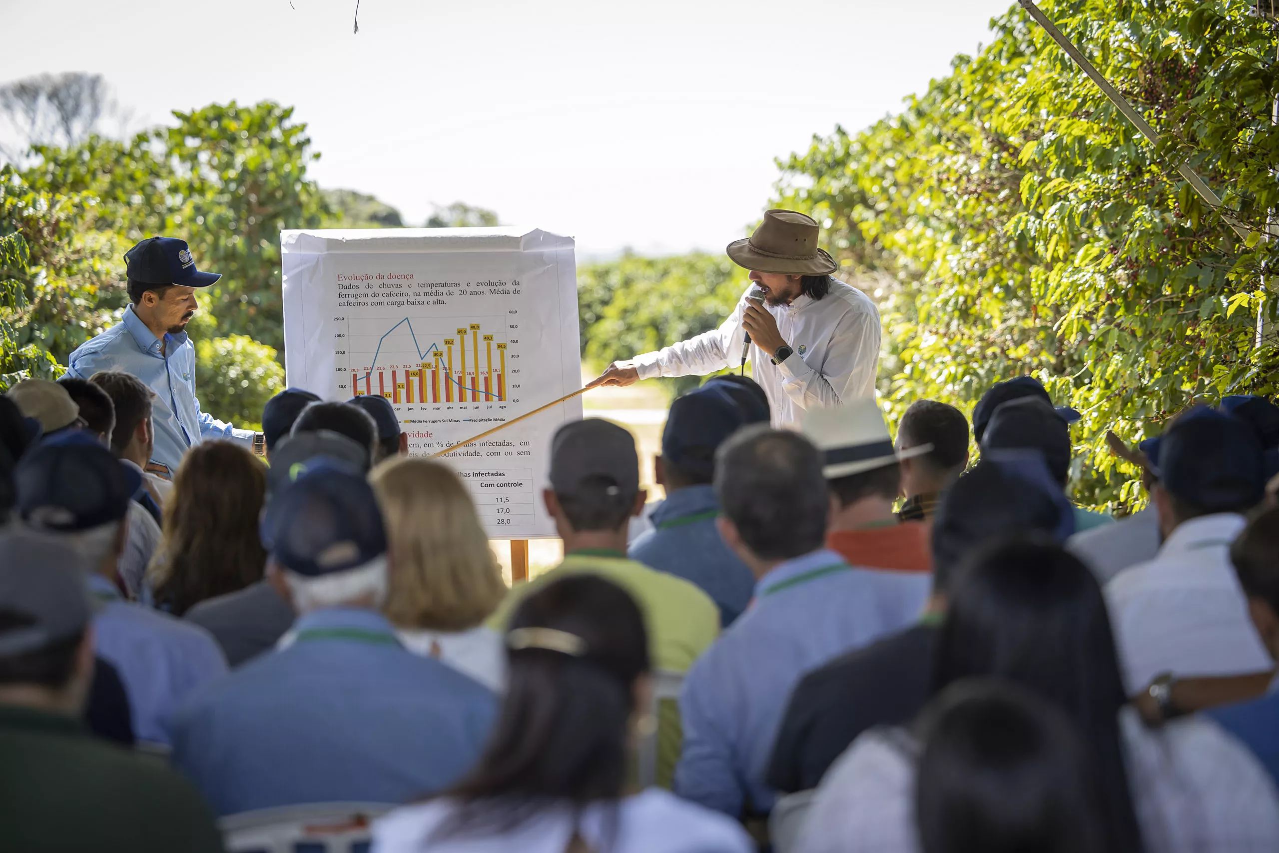 A programação contempla quatro temas centrais, baseados em pesquisas desenvolvidas na unidade local da Fundação Procafé. Os participantes percorrem estações de pesquisa distribuídas por talhões experimentais, onde são abordados temas como manejo de pragas e doenças, nutrição, variedades de café, podas, irrigação e mecanização agrícola. A proposta é oferecer uma experiência prática, conduzida por especialistas da Fundação, que ficam responsáveis por explicar as tecnologias e esclarecer dúvidas dos visitantes.