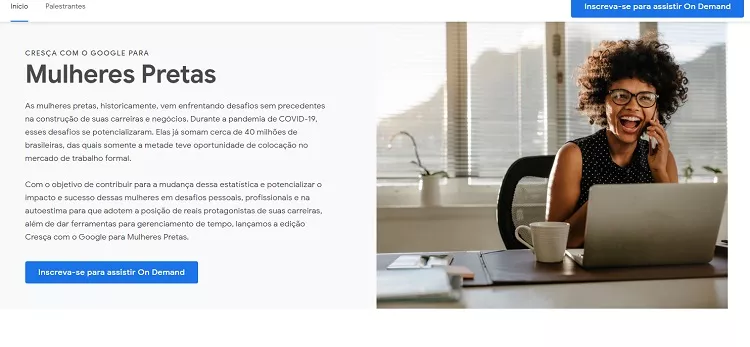 O Google lançou o programa Cresça com o Google para Mulheres Pretas, uma edição dedicada à discussão de temas relacionados ao desenvolvimento profissional e pessoal das mulheres pretas no Brasil. As pessoas interessadas têm acesso gratuito aos conteúdos pela plataforma online.