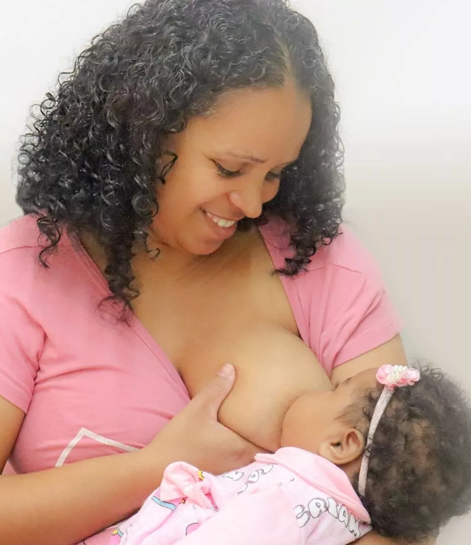 Thatiane Santos, nutricionista do Banco de Leite Humano, comentou que a campanha tem uma madrinha, que é Simônica Pereira do Nascimento. Ela autorizou o uso de sua imagem junto com a filha para promover o aleitamento materno.