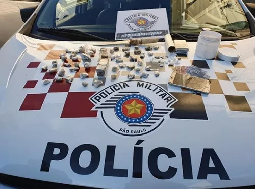 “No momento da abordagem, o traficante empreendeu fuga, jogando em uma residência um objeto branco, que posteriormente constatou-se ser um pote contendo várias porções de maconha e cocaína, prontas para venda. O indivíduo foi abordado e em sua posse também foi localizado dinheiro em espécie”, informou nota oficial do 15º Batalhão da PM.