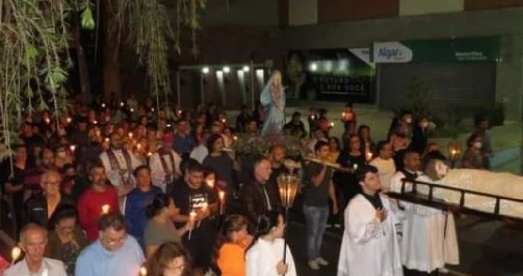 O bispo diocesano Dom Paulo Roberto Beloto participou da Procissão do Senhor Morto, nesta sexta-feira (15).