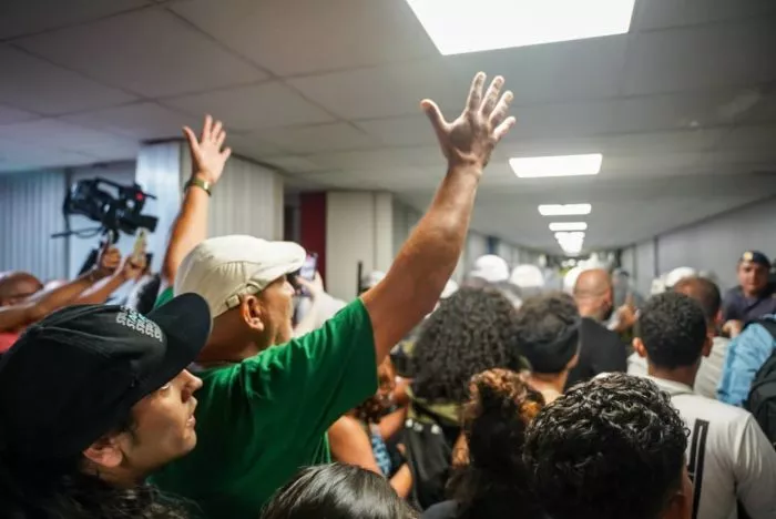 Oposição não participou da votação após confusão entre manifestantes e a PM. A sessão ficou interrompida por cerca de uma hora e meia e voltou sem a presença de público e sem os deputados oposicionistas.