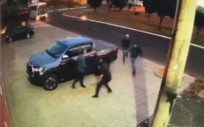 Assaltantes aterrorizam vítimas durante assalto no Distrito Industrial, em Franca, na manhã desta terça-feira (29). Dois bandidos armados roubaram caminhonete em via movimentada e não se importaram com sistema de monitoramento. A ação não durou mais que um minuto.